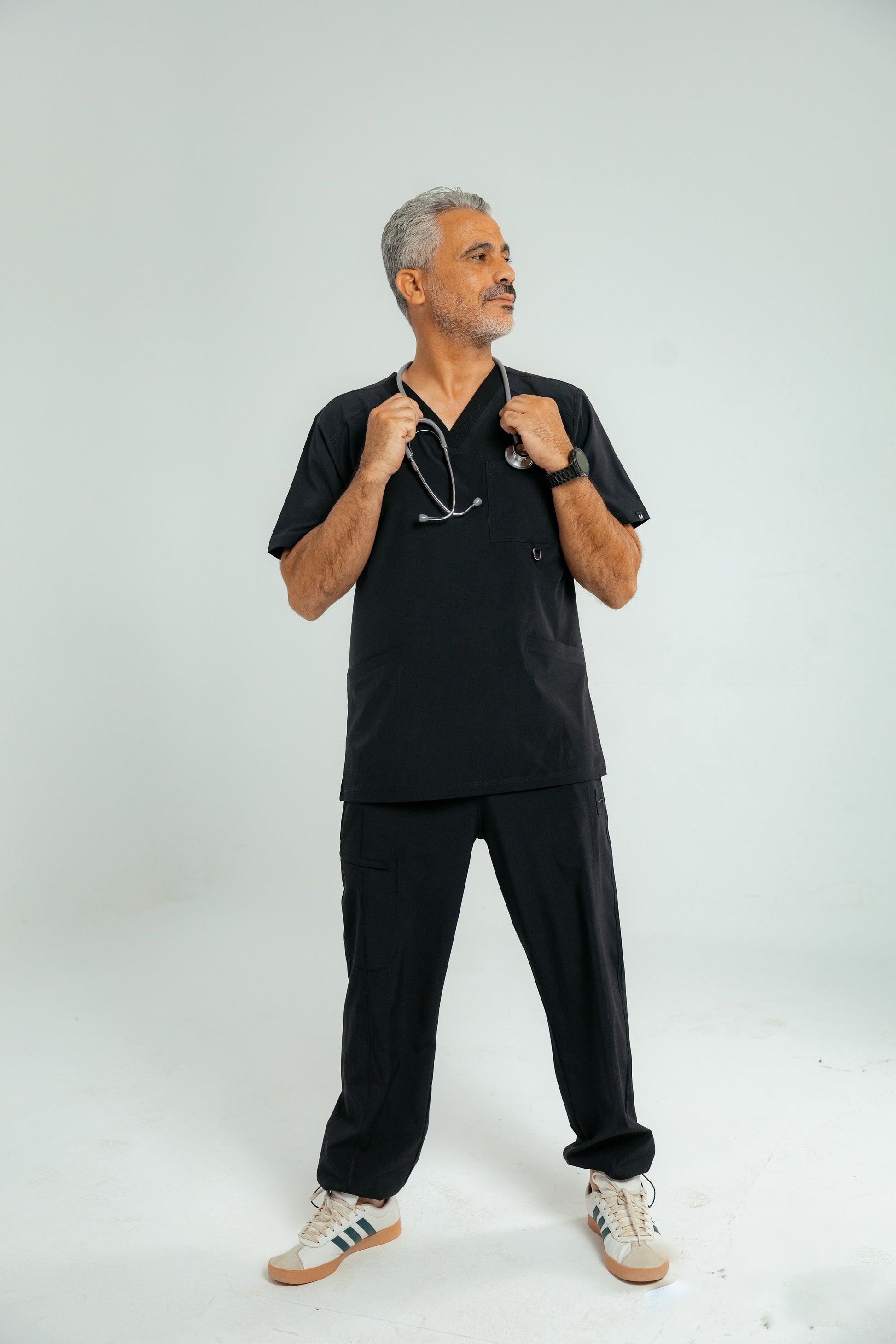 - Stretch poplin fabric that is breathable, durable, and built for long hours