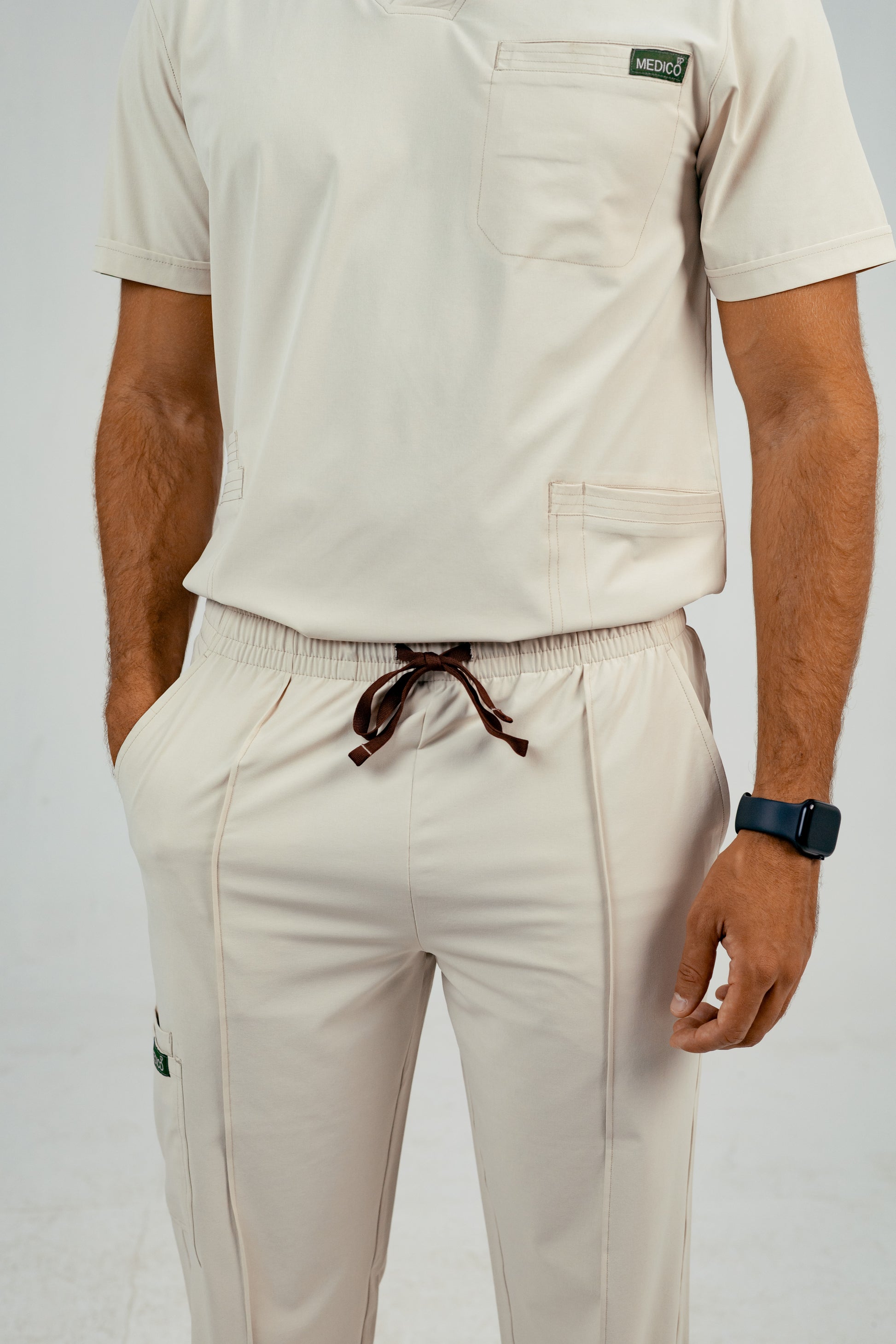 Engineered for performance and all-day ease, these men’s scrub pants are designed with a slim, tapered fit that offers both flexibility and a clean, professional silhouette. Crafted from lightweight, breathable fabric with a comfortable stretch, they feature a soft elastic waistband with a pop of contrast drawstring for an adjustable fit. Multiple pockets—including a secure side cargo pocket—offer convenient storage for your essentials, while the streamlined leg cut ensures effortless movement on and off the floor.